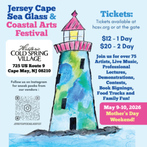 Book Signing at Jersey Cape Sea Glass & Coastal Arts Festival 10 May 10:00 AM - 4:00 PM Historic Cold Spring Village735 Seashore Rd, Cape May, NJ 08204